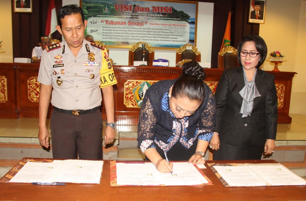 Kerjasama tersebut secara langsung ditandatangani Bupati Eka, didampingi Kapolres Tabanan Marsdianto, dan Kepala Kejari Tabanan Ni Wayan Sinaryati, di Ruang Rapat Lantai III Kantor Bupati Tabanan, Rabu (10/1). Nampak pula Ketua DPRD Tabanan I Ketut Suryadi, dan Sekda Kabupaten Tabanan I Nyoman Wirna Ariwangsa, beserta Seluruh OPD di Lingkungan Pemkab Tabanan, menyaksikan acara tersebut.