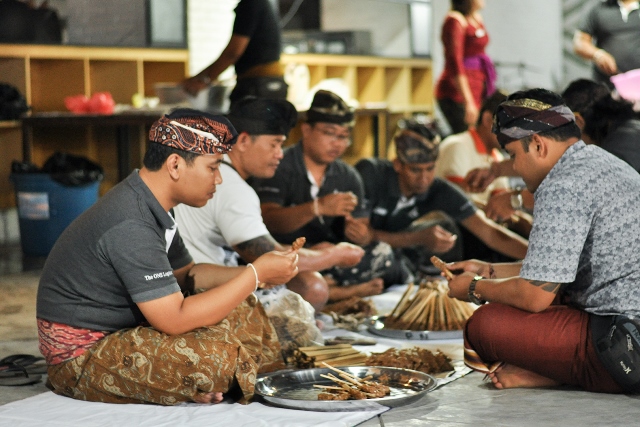 Yang unik pada Piodalan kali ini, ada kegiatan Mebat yang dilakukan oleh karyawan dan tim manajemen. Mebat adalah tradisi memasak bersama. Mereka berkumpul untuk mengolah berbagai makanan tradisional Bali, seperti Sate Lilit, Ayam Betutu, Ayam sambal Serai, Lawar dan Tum Babi.