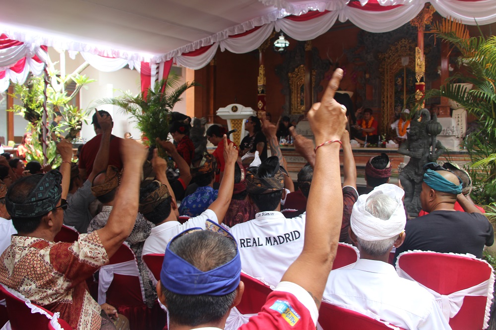 Penglingsir Puri Beraban Jembrana I Gusti Agung Bagus Suryadharna dalam sambutan mengajak semua anggota puri dan gria se-Kabupaten Jembrana untuk mendoakan, mendukung dan memilih Koster-Ace.