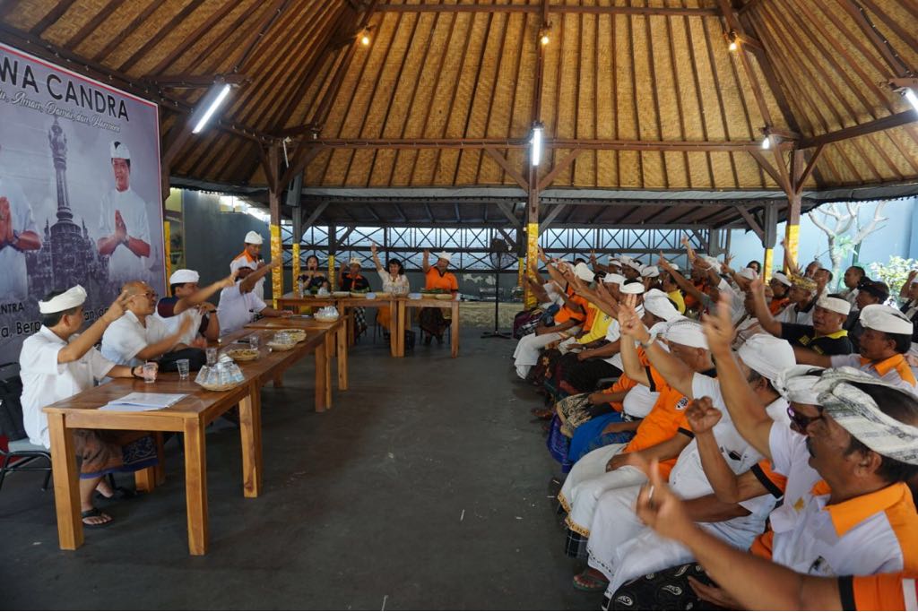 DENPASAR – Ribuan anggota Forum Komunikasi Putra Mahotama (FKPM) akhirnya sepakat mendukung pasangan calon (Paslon) Ida Bagus Rai Dharmawijaya Mantra-I Ketut Sudikerta (Mantra-Kerta). Hal ini terungkap dalam pertemuan para pengurus FKPM dari 9 kabupaten dan kota di Bali dengan Cawagub I Ketut Sudikerta di Denpasar, Kamis (3/5).