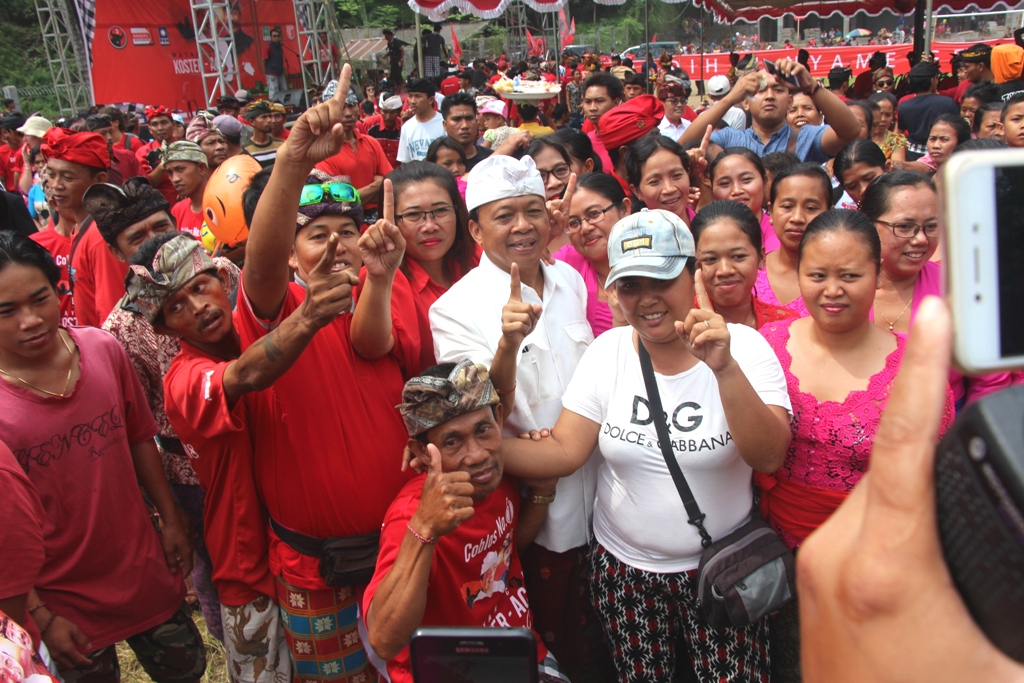 BULELENG – Calon Gubernur Bali nomor urut 1, Wayan Koster menggelar kampanye di Kabupatrn Buleleng. Di hadapan ribuan warga Desa Pakraman Sudaji, Kecamatan Sawan, Koster memaparkan program kerja yang akan diusungnya lima tahun ke depan. Salah satu yang menjadi prioritas Koster untuk tanah kelahirannya adalah percepatan infrastruktur. Menurutnya, hal itu akan mempercepat pengentasan kemiskinan di Gumi Panji Sakti.