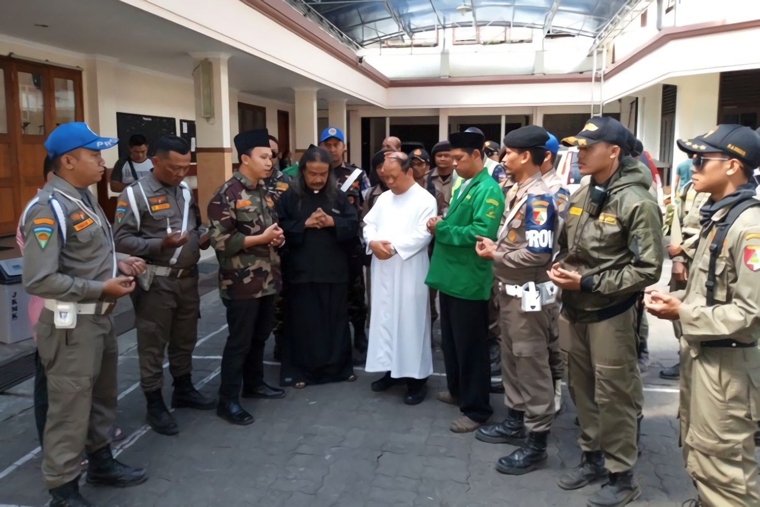 Ketua DPW Ansor Jawa Tengah Gus Sholah dan Pelaksana Tugas (plt) GP Ansor Kab. Semarang Muhammad Fahmi dan beberapa anggota Banser mengunjungi Gereja Kristus Raja Ungaran, untuk memberikan dukungan moril (doc. kompas.com)