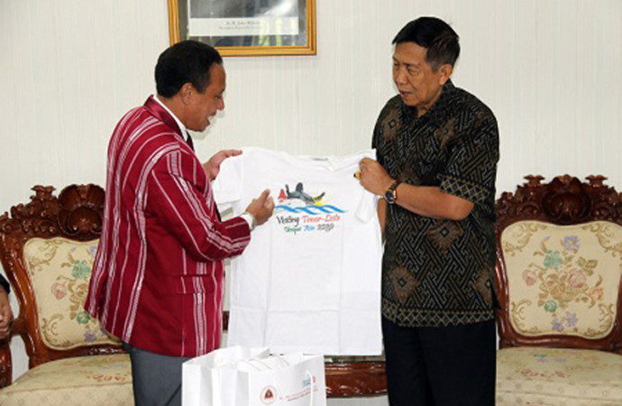 DENPASAR – Gubernur Bali Made Mangku Pastika menerima kunjungan kenegaraan dari Menteri Pariwisata Timor Leste Manuel Vong di Kantor Gubernur Bali, Denpasar, Jumat (18/5). Manuel Vong mengatakan Timor Leste saat ini bertumpu pada tiga sektor ekonomi yakni perminyakan, pertanian dan pariwisata. Namun mengingat minyak adalah sumber daya terbatas dan lahan pertanian yang terbatas, Timor Leste punya rencana pengembangan pariwisata hingga tahun 2030 mendatang.