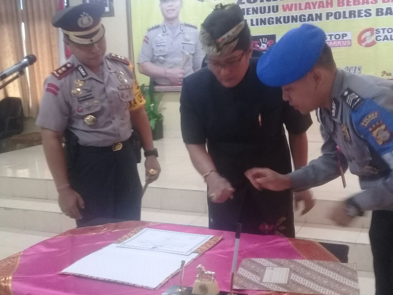 Mengantisipasi akan terjadi tindakan korupsi tersebut lebih khusus di lingkungan Polres Badung, hari ini Selasa (5/6/2018) Kapolres Badung AKBP Yudith Satriya Hananta bersama Forum Pimpinan Daerah di Kabupaten Badung diantaranya Bupati Badung Giri Prasta, Kepala Kejaksaan Negeri Badung Sunarko, Komandan Kodim 1611/Badung Letkol.INF.Handoko Yudho Wibowo.SE., Kepala Pengelinsir Puri Mengwi Anak Agung Gde Agung menandatangani Pencanangan Zona Integritas Menuju Wilayah Bebas dari Korupsi di Wilayah Polres Badung.