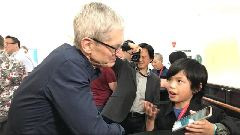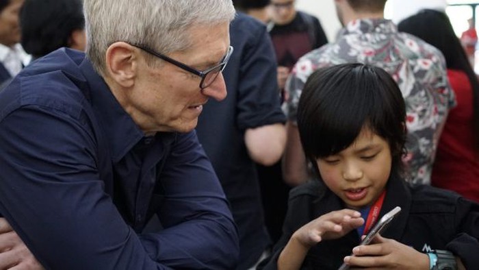 SAN JOSE – Bocah keturunan Indonesia, Yuma Soerianto memamerkan fotonya bersama CEO Apple, Tim Cook di akun Twitter pribadinya. Foto tersebut diambil di sela-sela acara kumpul developer tahunan, Worldwide Developer Conference ( WWDC 2018) yang diselenggarakan perusahaan teknologi raksasa Apple di San Jose, Minggu (3/6/2018).