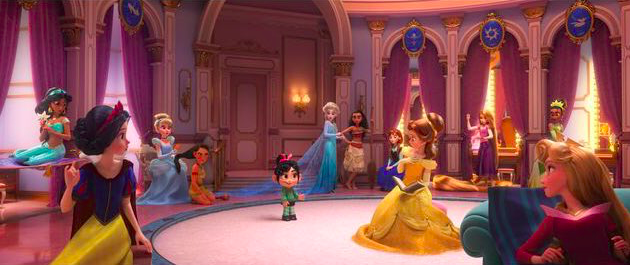 Ketika menghindari Stromtroopers, Vanellope justru masuk ke ruangan para putri Disney. Di sana, ia bertemu Belle, Tiana, Aurora, Cinderella, Mulan, Elsa, Anna, Rapunzel, Ariel, Pocahontas, Moana, Jasmine dan Snow White.