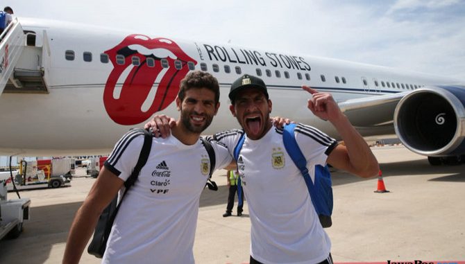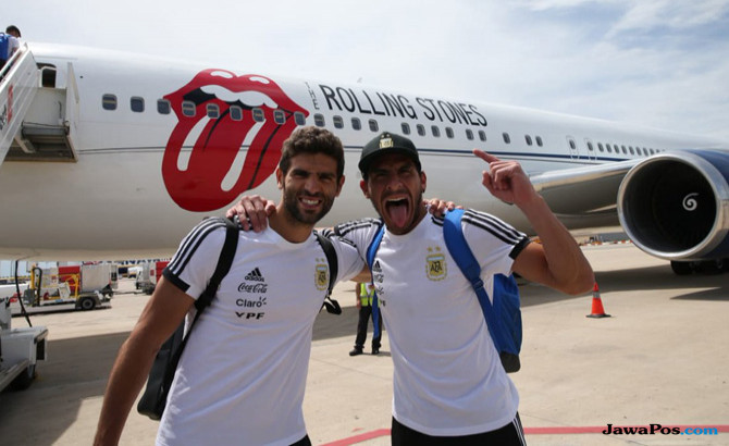 MOSKOW – Timnas Argentina membuat sensasi jelang Piala Dunia 2018 dengan tiba di Rusia menggunakan jet pribadi grup band The Rolling Stones.
