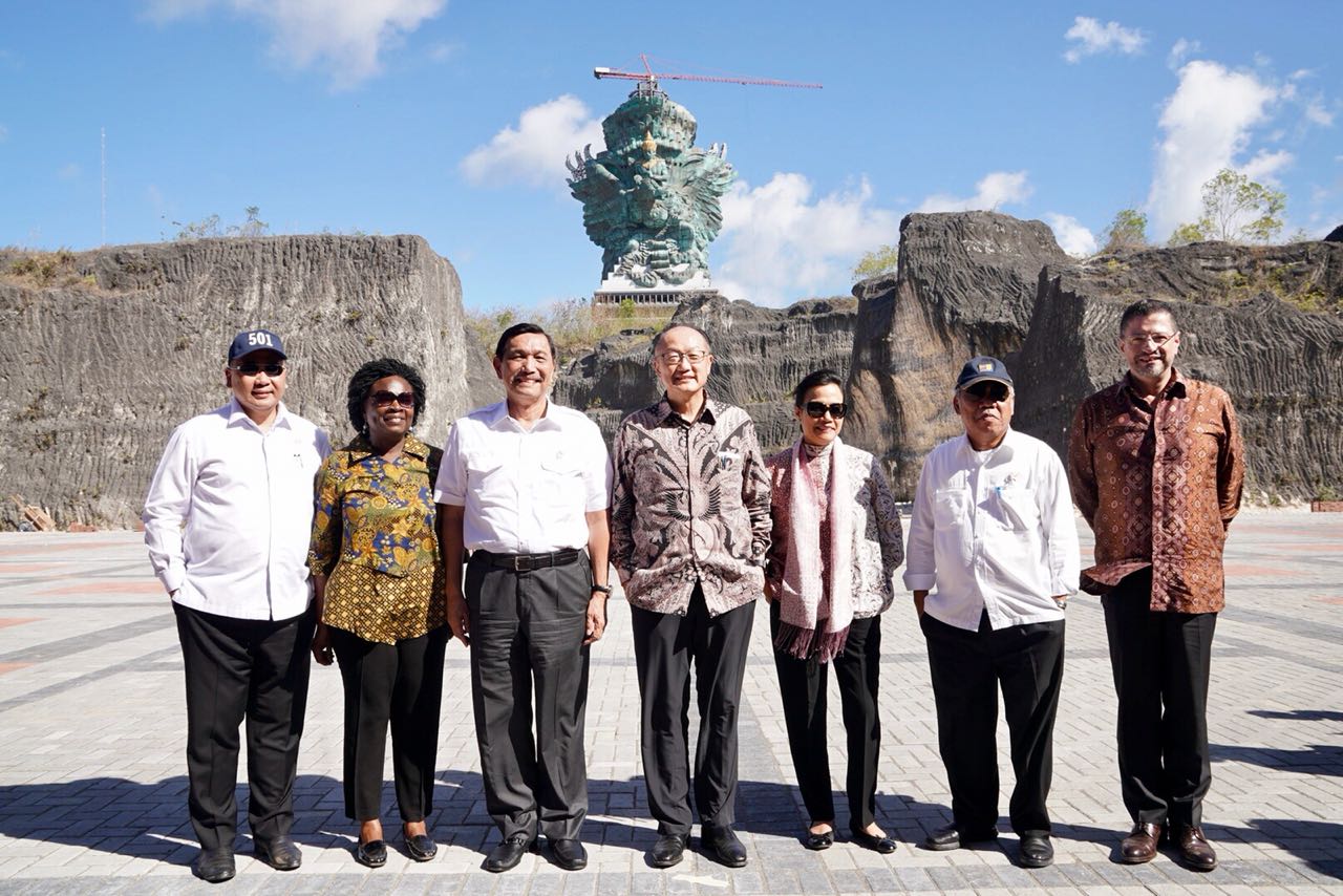 Denpasar, Theeast.co.id –Presiden Bank Dunia, Jim Yong Kim pada hari Kamis (5/6) memulai kunjungan dua harinya di Bali dan langsung melihat persiapan Pertemuan Tahunan Dana Moneter Internasional (IMF) – Bank Dunia (World Bank) dengan meninjau pembangunan patung Garuda Wisnu Kencana (GWK) yang rencananya akan rampung pada bulan Agustus mendatang. Dalam kunjungannya kali ini, Menko Maritim Luhut Pandjaitan, Menteri Keuangan Sri Mulyani, Menteri PUPR Basuki Hadimuljono dan Menteri Desa dan PDTT Eko Putro Sandjojo turut mendampingi.