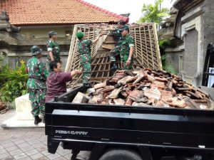 Dipimpin langsung oleh Danramil 1611-01/Dentim Kapten Inf I Gusti Ngurah Putra bersama anggota dan warga pemilik rumah Anak Agung Ketut Rai bahu-membahu membersihkan puing-puing kerusakan rumah masyarakat akibat kejadian gempa bumi tersebut.