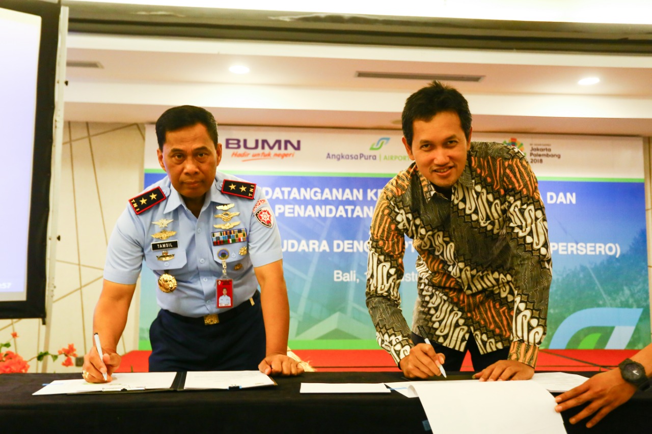 Denpasar, Theeast.co.id – PT Angkasa Pura I (Persero) dan TNI Angkatan Udara Republik Indonesia melaksanakan Penandatanganan Kesepakatan Bersama mengenai Pendayagunaan Aset Tetap Perusahaan untuk Pembangunan Relokasi Base Ops Lanud I Gusti Ngurah Rai serta Penandatanganan Perjanjian mengenai Penggunaan Bersama Pangkalan TNI Angkatan Udara Pattimura Ambon Sebagai Bandar Udara. Pendatanganan Kesepakatan dan Perjanjian Kerjasama dilaksanakan oleh Direktur Sumber Daya Manusia & Umum PT Angkasa Pura I (Persero) Adi Nugroho bersama Panglima Komando Operasi Angkatan Udara III Tamsil Gustari Malik di Ruang Rapat Novotel Bali Ngurah Rai Airport. “Penandatangan kesepakatan bersama antara Angkasa Pura I dan TNI AU merupakan salah satu bentuk sinergi antar instansi yang dilandasi oleh semangat untuk meningkatkan sarana & prasarana di Bandara I Gusti Ngurah Rai Bali guna mendukung penyelenggaraan World Bank Group Annual Meeting 2018 yang dilaksanakan pada Oktober mendatang,” ujar Direktur SDM & Umum Angkasa Pura I, Adi Nugroho, Sabtu (11/8).