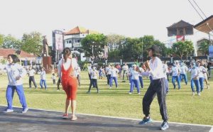 Denpasar,Theeast.co.id, – Dalam rangka memperingati HUT ke-73 Kemerdekaan RI, sekaligus memeriahkan perayaan HUT le-72 Jalasenastri, seluruh pengurus dan anggota Jalasenstri Cabang 10 Korcab V Daerah Jalasenastri Armada II beserta keluarga besar Pangkalan TNI Angkatan Laut (Lanal) Denpasar yang menempati Rumdis TNI AL R Widianto Mako Lanal Denpasar melaksanakan olahraga bersama dan jalan sehat, kemarin.