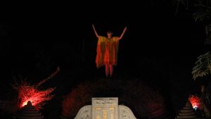 Pentas ketiga ini sedikit berbeda, karena mengambil panggung di sebuah pemakaman keluarga China. Pemakaman ini adalah milik keluarga keturunan Liem Liang An yang menjadi salah satu kapitan China pertama yang hidup di Buleleng. Pemakaman ini menjadi bagian dari rumah utama.