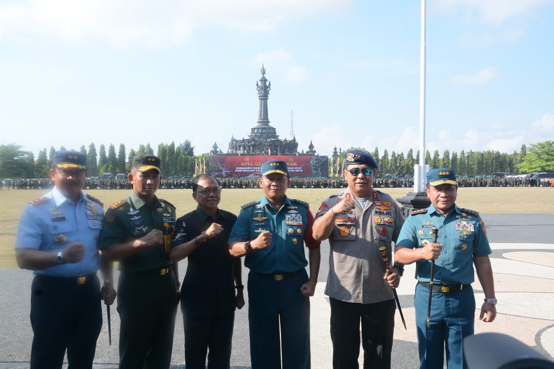 Denpasar, Theeast.co.id – Kepala Staf Umum (Kasum) TNI Laksdya TNI Dr Didit Herdiawan Ashaf, MPA., MBA., selaku Panglima Komando Tugas Gabungan Pengamanan (Pangkogasgabpam) memimpin pelaksanaan Apel Gelar Pasukan Gabungan Pengamanan “Annual Meetings IMF-WB 2018” di Lapangan Puputan Margarana Niti Mandala, Renon, Denpasar, Minggu (7/10).