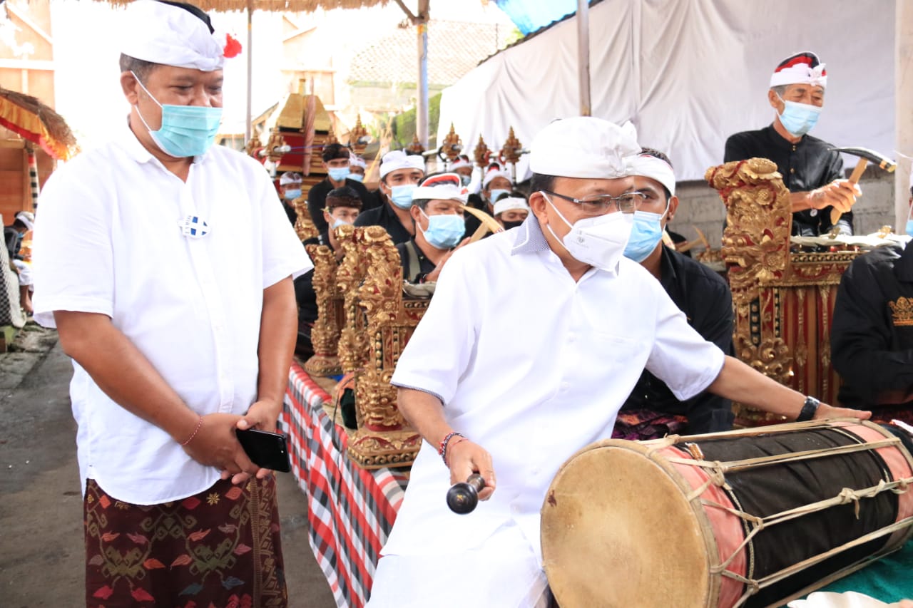 Hadiri Karya Ngenteg Linggih, Wayan Koster Bermain Kendang di Pura Agung Pakusara Sekaligus Meninjau Infrastruktur Jalan Rusak