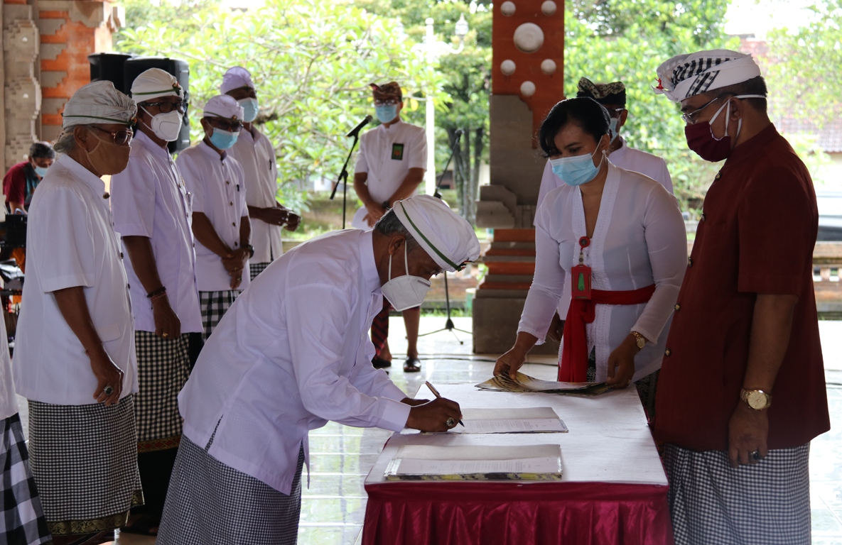 TABANAN, The East Indonesia – Sekretaris Daerah Kabupaten Tabanan I Gede Susila, menghadiri sekaligus menyaksikan Pengukuhan dan Pejaya-jayaan Prajuru Majelis Desa Adat (MDA) Kecamatan Se-Kabupaten Tabanan masa bakti 2021-2026 di Gedung Kesenian I Ketut Maria Tabanan, Jumat (8/01).