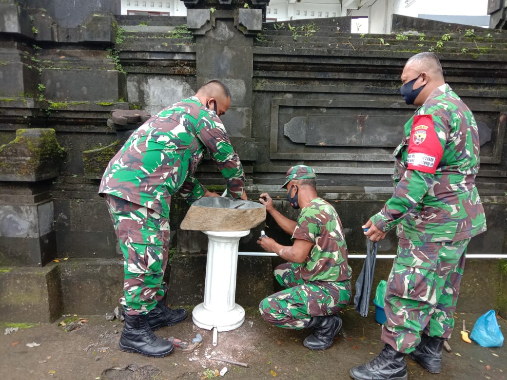 Dandim 1626/Bangli juga menjelaskan bahwa bantuan wastafel ini merupakan wujud nyata kepedulian TNI terhadap masyarakat di tengah masa transisi penerapan tatanan kehidupan baru.