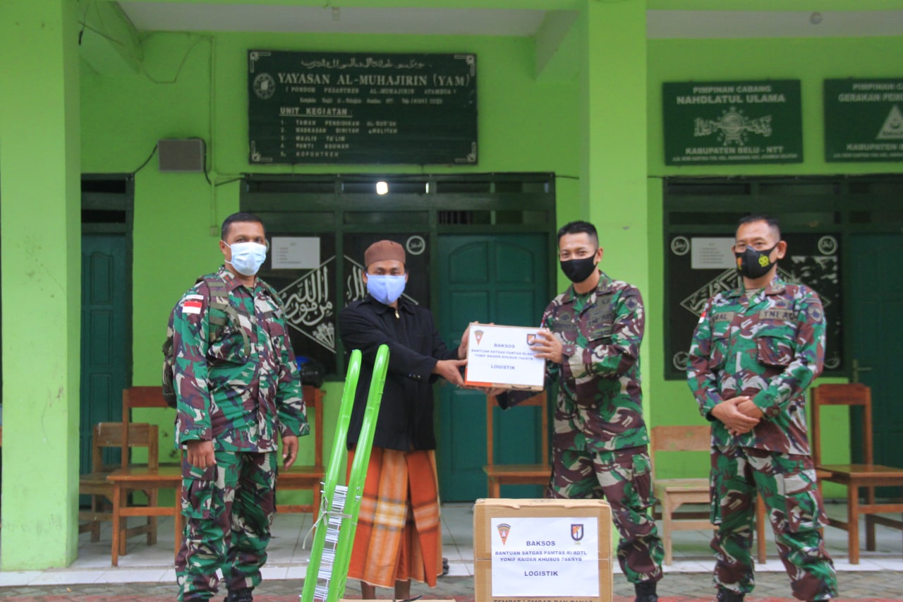 Bantuan ini diserahkan langsung oleh Wadan Satgas Pamtas RI-RDTL Yonif RK 744/SYB, Kapten Inf Satriyo Pinandito secara simbolis kepada Muhammad Sobri selaku Ustad dan pimpinan Pondok Pesantren Al-Muhajirin Atambua.
