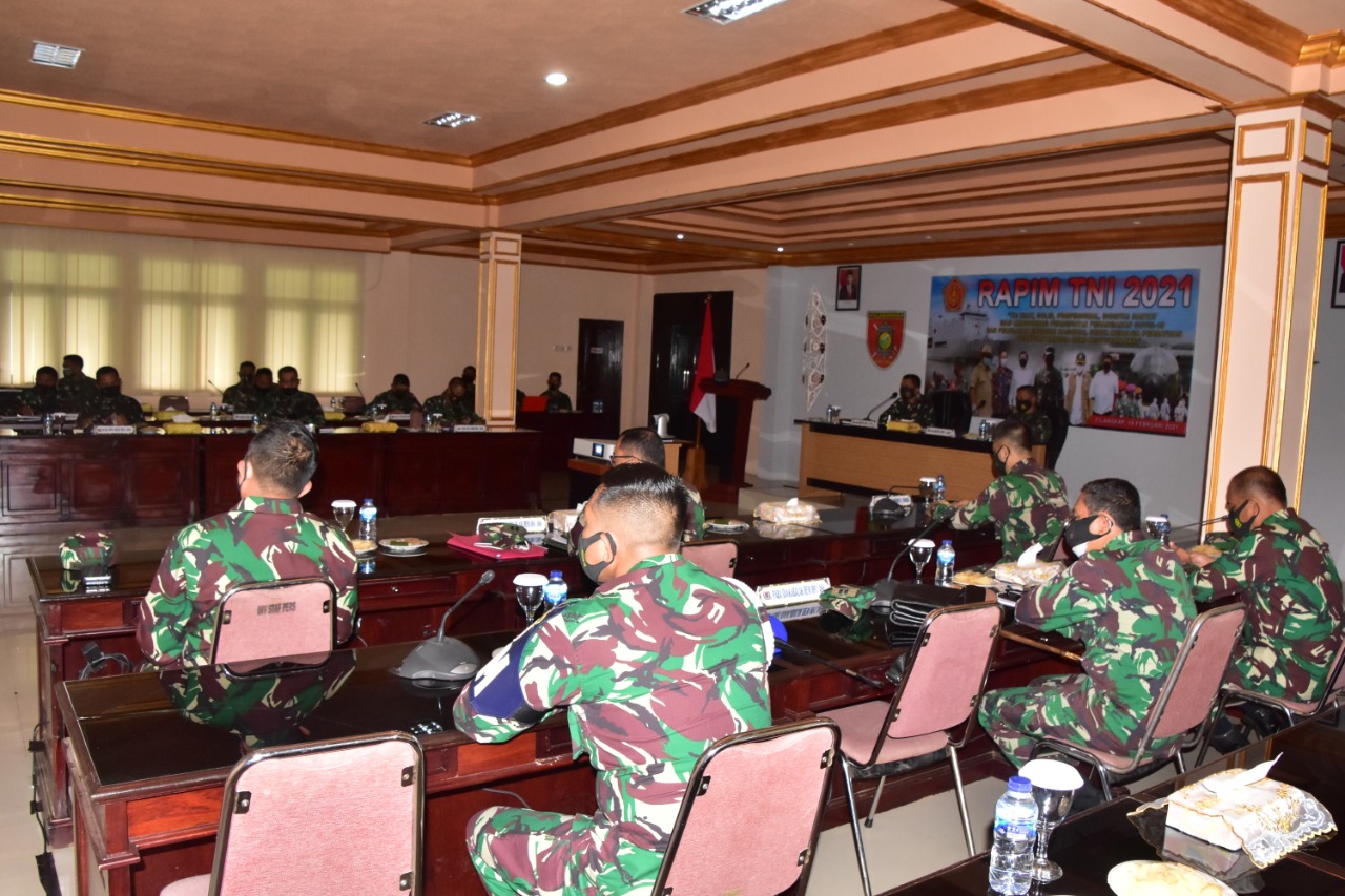 Kegiatan Rapin bertema TNI Kuat, Solid, Profesional Di Cintai Rakyat Siap Mendukung Percepatan Penanganan Covid- 19 Dan Pemulihan Ekonomi Nasional Serta Menjaga Persatuan Kesatuan Bangsa Demi Keutuhan NKRI yang dipimpin oleh Panglima TNI Marsekal TNI Hadi Tjahjanto, S.IP.
