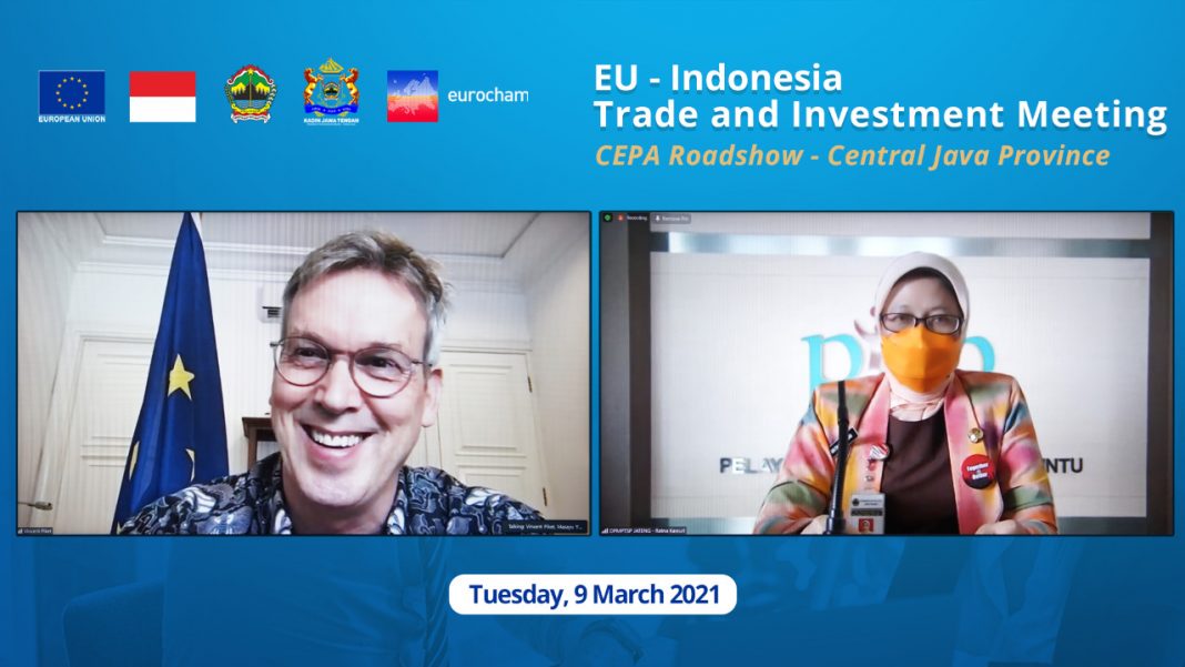 Dalam kunjungan kerja virtual tersebut, Delegasi Uni Eropa bekerja sama dengan Pemda Jawa Tengah dan KADIN Jawa Tengah menyelenggarakan diskusi panel tentang manfaat CEPA. Panel menghadirkan Marika Jakas, Kepala Bagian Perdagangan dan Ekonomi, Delegasi Uni Eropa untuk Indonesia; Ni Made Ayu Marthini, Direktur Bilateral/Negosiasi, Kementerian Perdagangan; Wahyuni Bahar, Ketua Komite Tetap Lembaga Multilateral dan Perjanjian Perdagangan Bebas, KADIN Indonesia; dan Wichard von Harrach, Wakil Ketua Kamar Dagang Eropa di Indonesia (EuroCham).