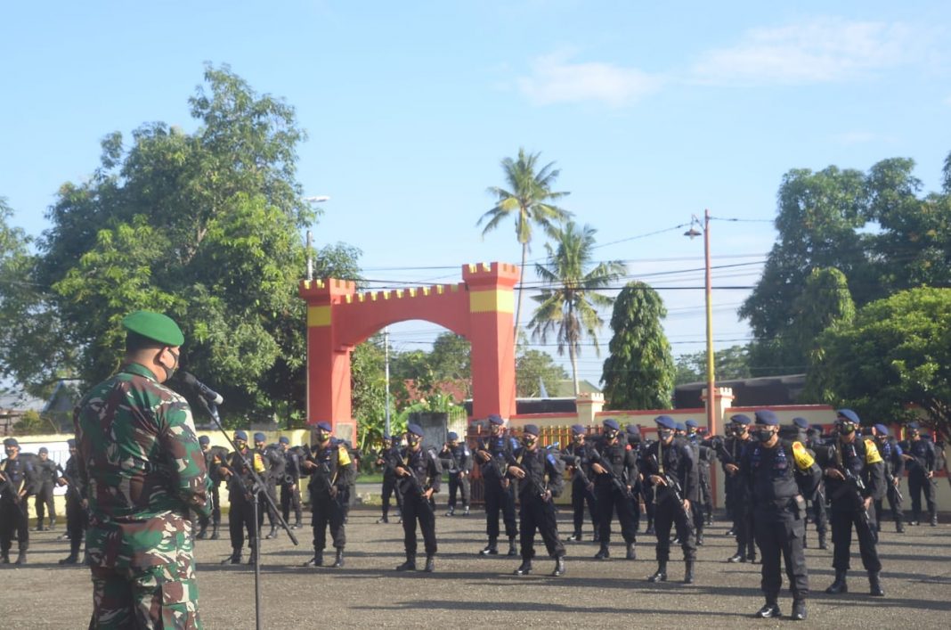 BONE, The East Indonesia – Komandan Kodim 1407/Bone Letkol Kav. Budiman, S.H. menjadi pimpinan apel pemberangkatan Pesonel Batalyon C Pelopor Brimob yang akan melaksanakan tugas BKO ke Polda Papua, Minggu (14/03/2021).