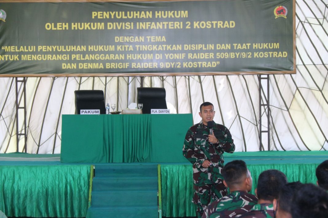 Penyuluhan Hukum dengan mengangkat tema “Melalui Penyuluhan Hukum Kita Tingkatkan Disiplin dan Taat Hukum Untuk Mengurangi Pelanggaran Hukum di Satuan” dilaksanakan di Yonif Raider 514/Sabaddha Yudha hari Selasa tanggal 22 Maret 2021, di Yonif Raider 509/Balawara Yudha dan Denma Brigif 9/Dharaka Yudha tanggal 23 Maret 2021, serta di Yonif Raider 515/Ugra Tapa Yudha pada hari Rabu, 24 Maret 2021.