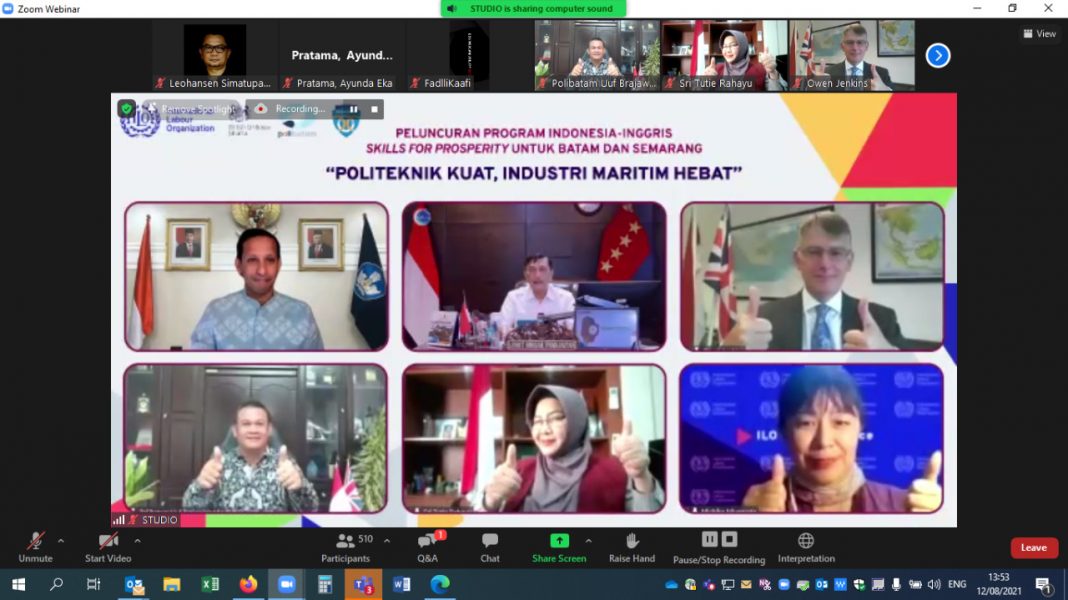 JAKARTA, The East Indonesia – Politeknik Negeri Batam (Polibatam) dan Politeknik Maritim Negeri Indonesia (Polimarin) bersama Organisasi Buruh Internasional (ILO) dan didukung oleh Pemerintah Inggris meluncurkan program Skills for Prosperity di Indonesia (SfP-Indonesia), secara daring, Kamis, (12/8). Program yang mengusung tema “Politeknik Kuat, Industri Maritim Hebat” tersebut bertujuan untuk memperkuat sumber daya manusia (SDM) maritim melalui pengembangan keterampilan dan peningkatan kerja sama industri.