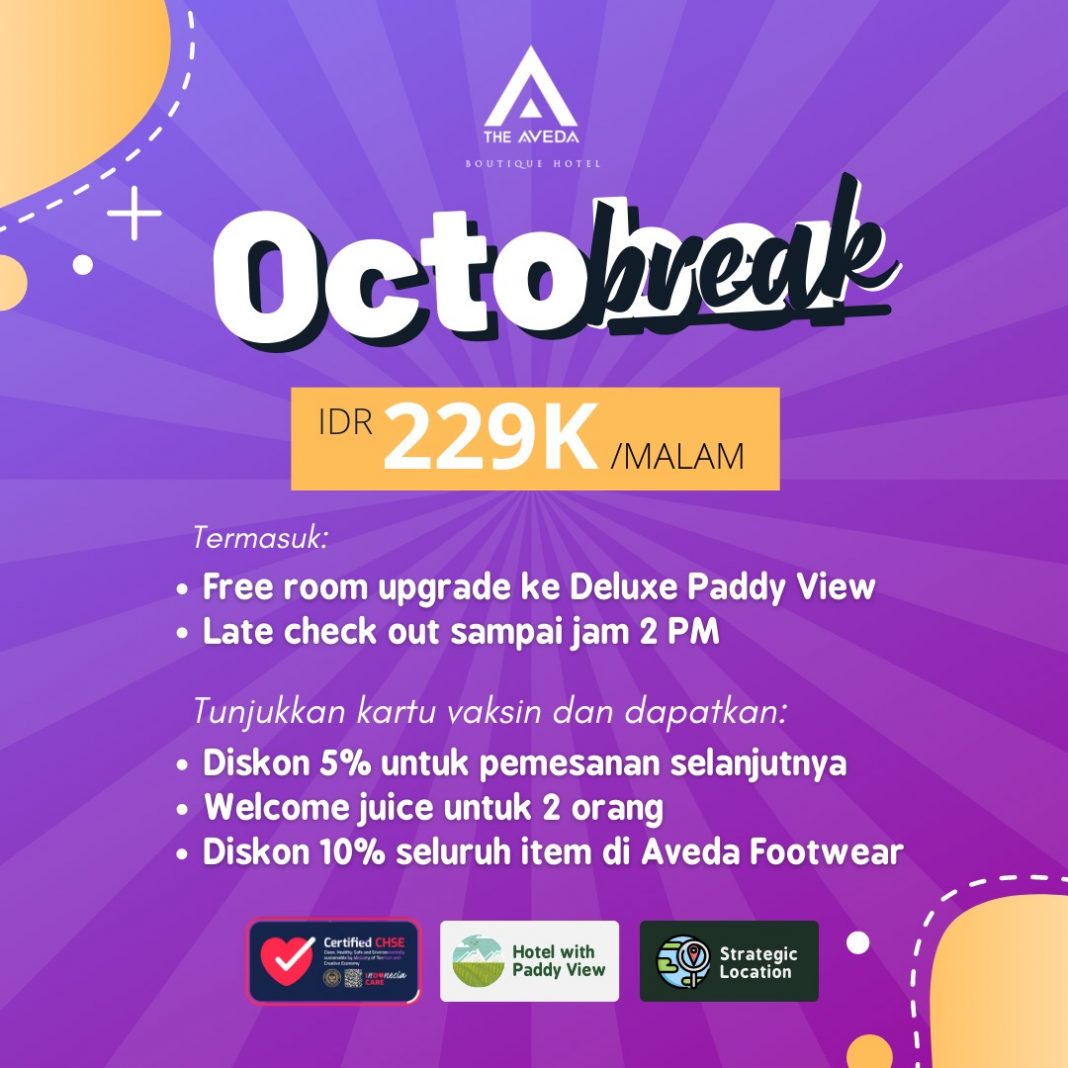 BALI, The East Indonesia – The Aveda Boutique Hotel, hotel bintang 4 yang terletak di Petitenget Seminyak pada bulan Oktober ini menawarkan promo terbarunya yakni Octobreak. Dengan konsep ‘take a break’, hotel dekat Pantai Petitenget ini mengundang wisatawan untuk relaks atau beristirahat dari hiruk pikuk kehidupan dengan staycation sambil menikmati hamparan sawah, bagaikan Anda sedang berada dan berlibur di kawasan wisata Ubud.
