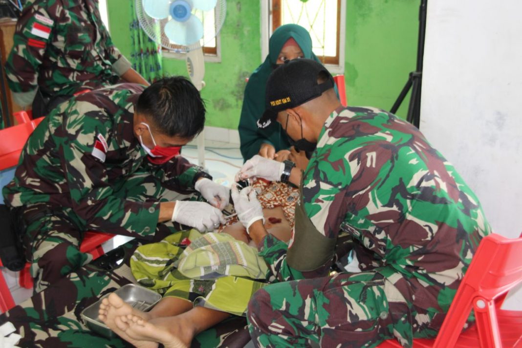 Lebih lanjut Dansatgas mengatakan kegiatan pelayanan kesehatan dan Baksos Terpadu yang dilakukan diantaranya layanan dokter spesialis mata, pengobatan umum, pengecekan darah, sunat, edukasi kesehatan, vaksinasi Covid 19 dan Donor darah.