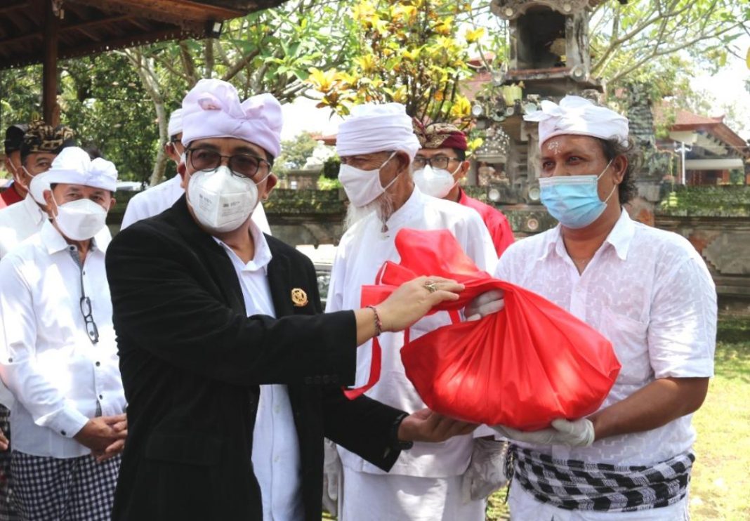 TABANAN, The East Indonesia – Bantuan Paket Sembako secara berkelanjutan disalurkan oleh Pemkab Tabanan bekerjasama dengan pihak CSR Yayasan Dalem Gedong Ratih, kali ini diserahkan kepada para Pemangku dan Juru Sapuh di Pura Puser Tasik Tabanan dan Pura Luhur Batukau. Paket sembako diserahkan secara simbolis oleh Bupati Tabanan Dr. I Komang Gede Sanjaya, S.E., M.M., di Pura Puser Tasik, Tabanan, Jumat, (29/10).