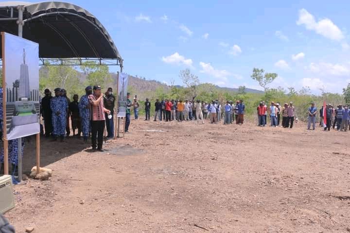 ATAMBUA, The East Indonesia – Bupati Belu, dr. Agustinus Taolin, SpPD-KGEH., FINASIM melakukan ground breaking atau peletakan batu pertama pembangunan Monumen Pejuang Timor-Timur di Salore, Desa Tulakadi, Kecamatan Tasifeto Timur, Kabupaten Belu, wilayah Perbatasan Negara RI-RDTL, Kamis (28/10/2021).