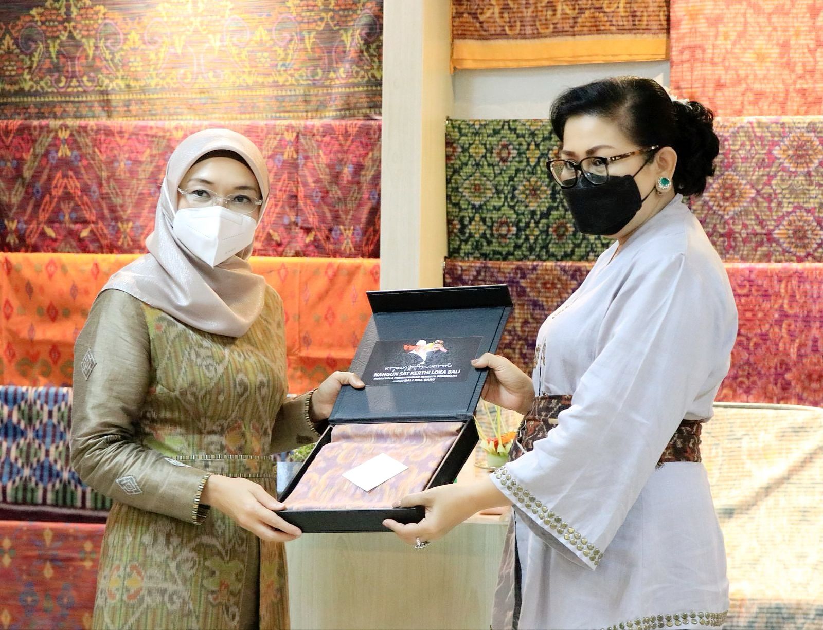Diakhir kunjungannya, Ketua Umum Dekranasda Provinsi Bali, Ny. Putri Suastini Koster memberikan cinderamata berupa Kain Tenun Endek Bali kepada Ibu Wakil Presiden, Hj. Wury Ma’ruf Amin, yang sekaligus dijadikan ajang promosi ketingkat nasional sesuai dengan Surat Edaran (SE) Gubernur Bali Nomor 04 Tahun 2021 tentang Penggunaan Kain Tenun Endek Bali/Kain Tenun Tradisional Bali.***