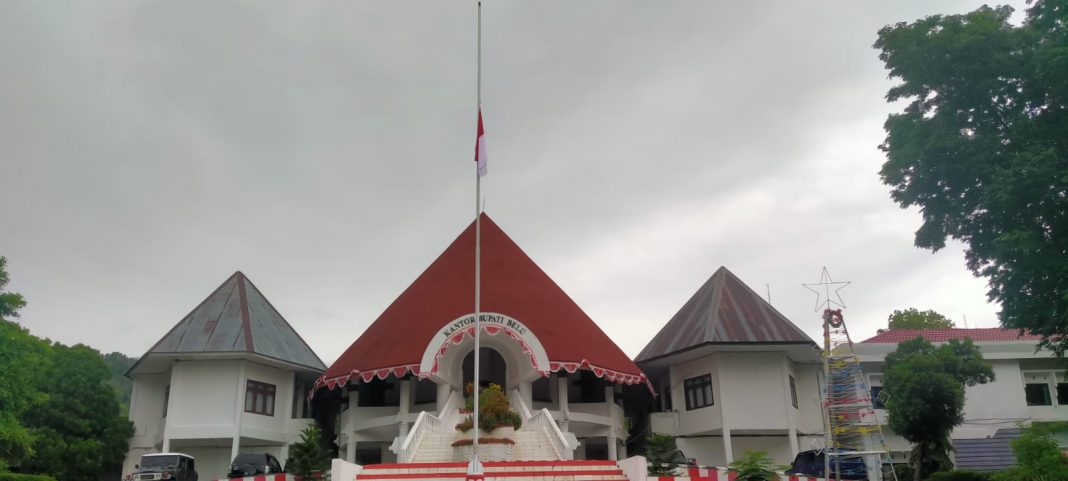 ATAMBUA, The East Indonesia – Pemerintah Kabupaten Belu di bawah kepemimpinan Bupati Belu, dr. Agustinus Taolin, SpPD-KGEH., FINASIM dan Wakil Bupati Belu, Drs. Aloysius Haleserens, MM menginstruksikan untuk mengibarkan Bendera Merah Putih setengah tiang di Gedung Kantor masing-masing sebagai tanda turut berbelasungkawa atas meninggalnya Gubernur Nusa Tenggara Timur (NTT) masa jabatan 2008-2013 dan 2013-2018, alm. Drs. Frans Lebu Raya.