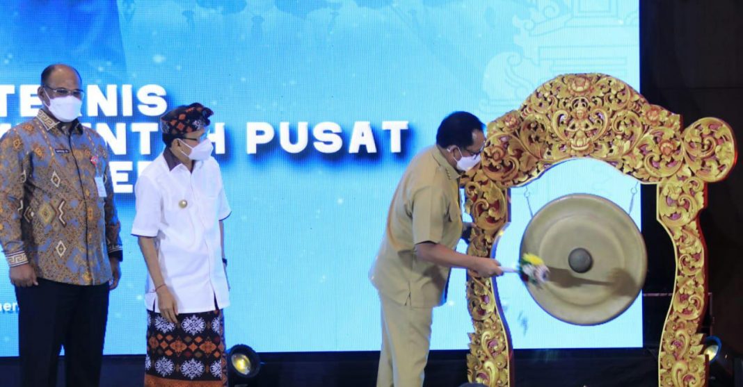 BALI, The East Indonesia – Gubernur Bali, Wayan Koster mendampingi Menteri Dalam Negeri (Mendagri) Muhammad Tito Karnavian membuka secara resmi Rapat Koordinasi Teknis Pelaksanaan Dekonsentrasi Gubernur Wakil Pemerintah Pusat (GWPP) Tahun 2022 pada Kamis, 27 Januari 2022 di Hotel Merusaka, ITDC, Nusa Dua.