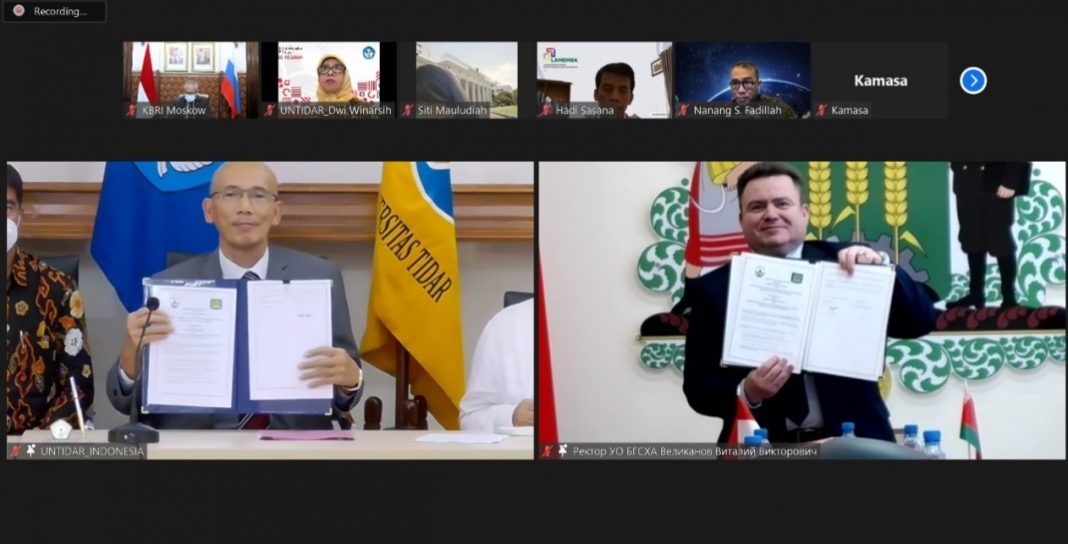 Salah satu hasilnya adalah kerja sama bidang pendidikan agro industri antara Universitas Tidar (Untidar) Magelang dengan Belarusian State Agricultural Academy (BSAA), Gorki, Belarus yang diresmikan melalui penandatanganan nota kesepahaman secara virtual pada Senin (24/1).