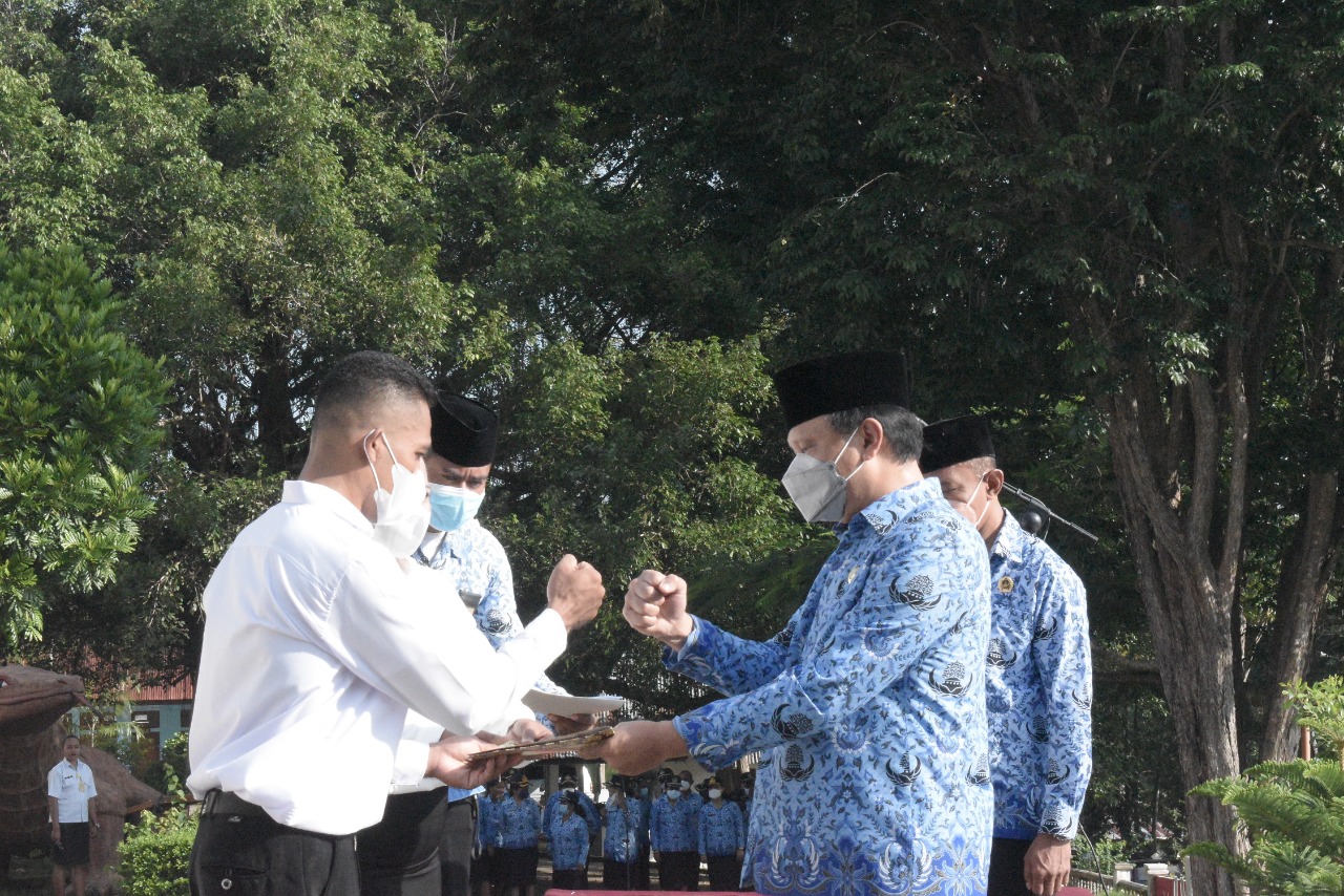 ATAMBUA, The East Indonesia – Bupati Belu dr. Agustinus Taolin, SpPD-KGEH,. FINASIM, menyerahkan Keputusan Bupati Belu tentang Pengangkatan Pegawai Pemerintah dengan Perjanjian Kerja (PPPK) bagi 82 orang PPPK formasi tahun 2021 lingkup Pemerintah Kabupaten Belu, Senin pagi (07/02/2022).
