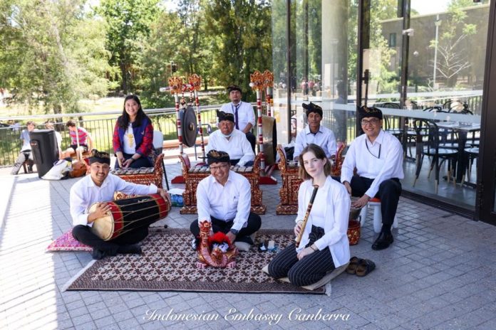 CANBERA, Fajarbadung.com – Gamelan Bali hadir menyambut kedatangan mahasiswa mancanegara Australian National University (ANU) yang berlokasi di Canberra, Australia, saat penyelenggaraan masa orientasi mahasiswa yang dimulai pada hari Senin, 14 Februari 2022.