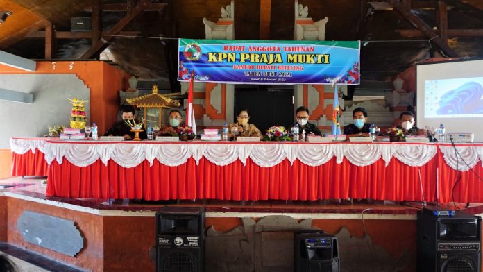 Sementara itu, Ketua KPN Praja Mukti Ketut Suparto mengungkapkan jumlah anggota tahun 2021 sebanyak 444 orang. Jumlah ini berkurang sebanyak 75 orang pada tahun 2021 karena pensiun atau meninggal. Penambahan juga terjadi sebanyak sebelas orang pada tahun 2021. Di sisi lain, keuntungan yang didapat pada tahun buku 2021 Rp509,8 juta. “Ini berarti lebih sebesar 1,14 persen dari target yang telah ditetapkan yaitu sebesar Rp504,1 juta,” ungkapnya.***