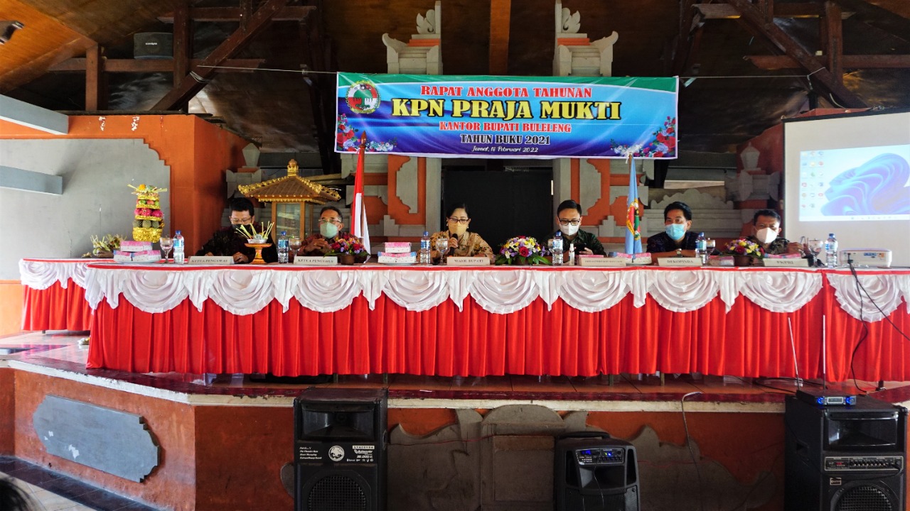 Hal itu disampaikan dalam sambutannya yang dibacakan Asisten Bidang Perekonomian dan Pembangunan Setda Buleleng Ni Made Rousmini saat Rapat Anggota Tahunan (RAT) KPN Praja Mukti Tahun Buku 2021 di Wantilan Praja Winangun, Kantor Bupati Buleleng, (18/2).