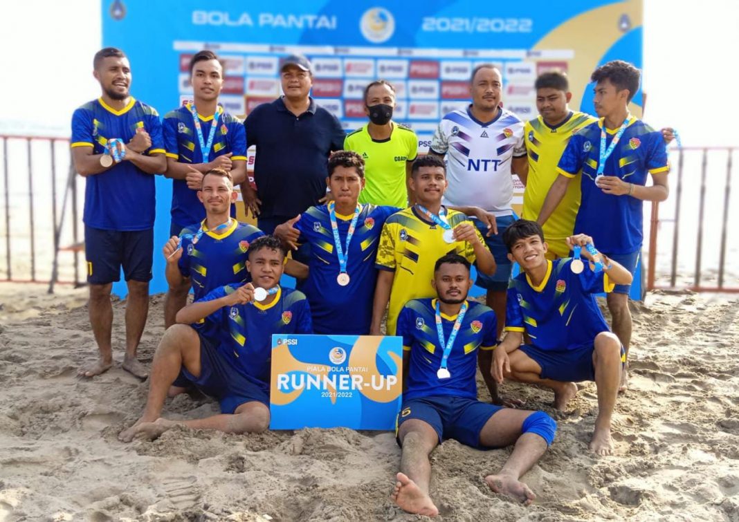 KUTA, The East Indonesia – Tim Sepabola Pantai (Beach Soccer) NTT harus puas menjadi Runner Up pada Kejurnas Sepakbola Pantai memperebutkan Piala Bola Pantai 2022 yang berlangsung tanggal 20-24 Maret 2022 di Pantai Legian, Bali. Pada pertandingan ‘Hidup-Mati, melawan Tim Bali B (Bali All Star) Rabu (24/3/2022) petang, anak-anak asuhan Yan Daulaka tersebut harus mengakui keperkasaan tim tuan rumah dengan skor 6-2.