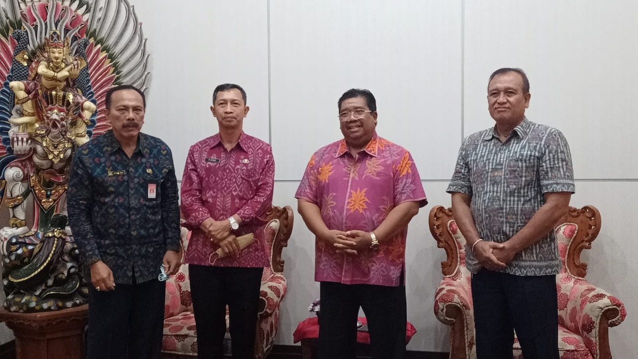 aption : Bupati Putu Agus Suradnyana  saat menerima audiensi dari Staf Ahli Gubernur Bali I Dewa Putu Eka Wijaya Wardana dan I Wayan Serinah serta Staf Ahli Bupati Buleleng Bidang Kemasyarakatan dan SDM I Made Budi Astawa di ruang kerjanya, Selasa (19/4). Foto : Ist