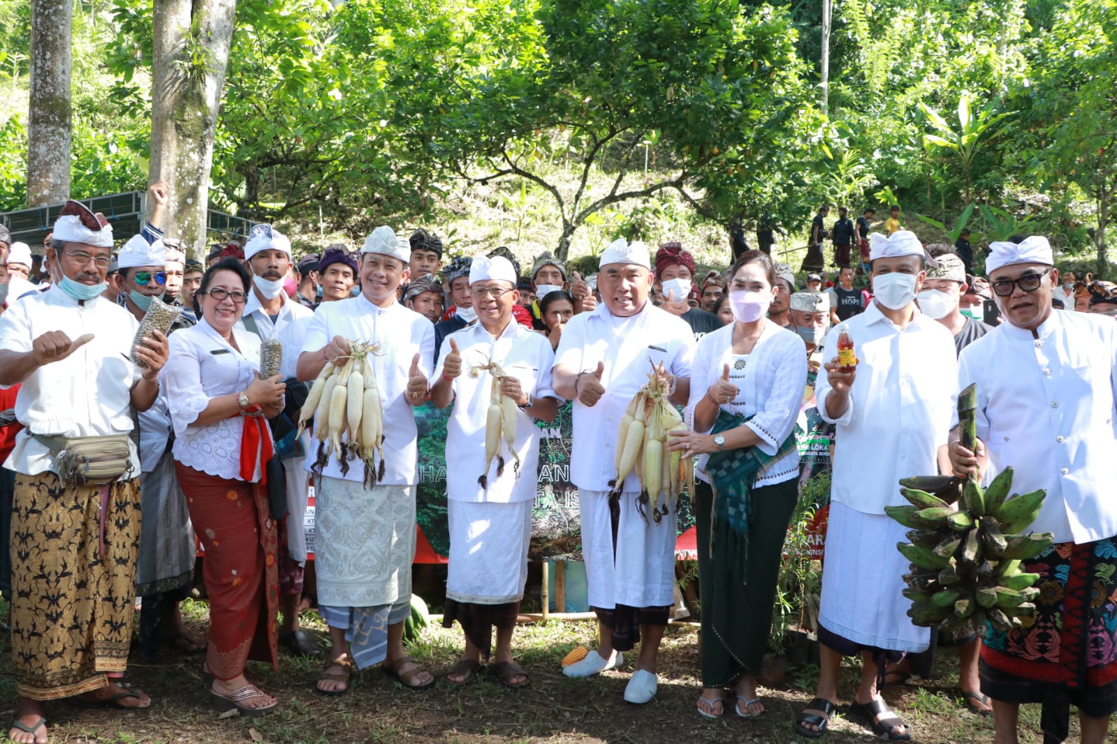 Gubernur Bali, Wayan Koster bersama Forkopimda Bali menggelar Perayaan Rahina Tumpek Wariga di Pura Pegubugan, Desa Manistutu, Kecamatan Melaya, Kabupaten Jembrana. Foto : Ist