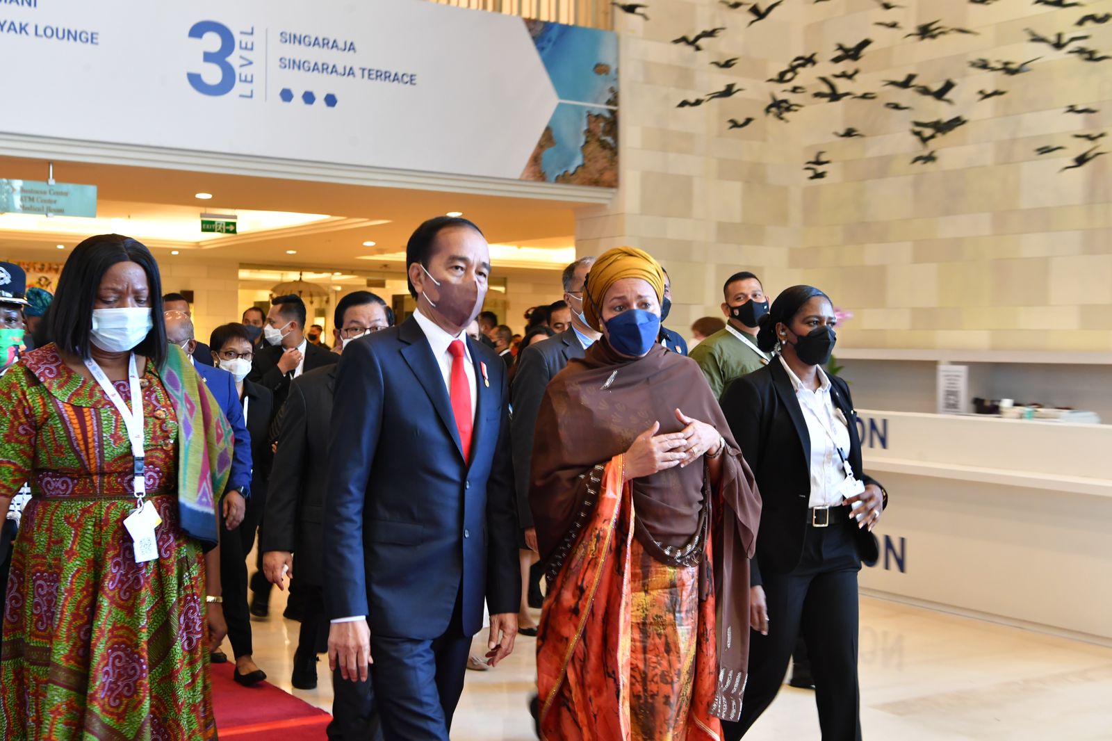 Turut mendampingi Presiden yaitu Menteri Koordinator Bidang Pembangunan Manusia dan Kebudayaan Muhadjir Effendy, Kepala BNPB Suharyanto, dan Gubernur Bali Wayan Koster.