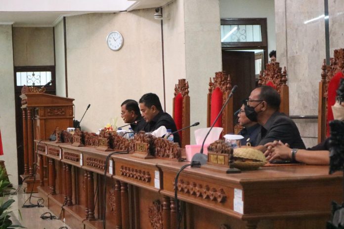SINGARAJA, The East Indonesia – Mewakili Bupati Buleleng, Wakil Bupati Buleleng, dr. I Nyoman Sutjidra, Sp.,OG menyampaikan Nota Pengantar tiga Rancangan Peraturan Daerah (Ranperda) dan pengumuman usul pemberhentian masa jabatan Bupati dan Wakil Bupati Buleleng tahun 2017-2022. Rapat ini berlangsung di Ruang Sidang DPRD Buleleng, Jumat, (27/5).