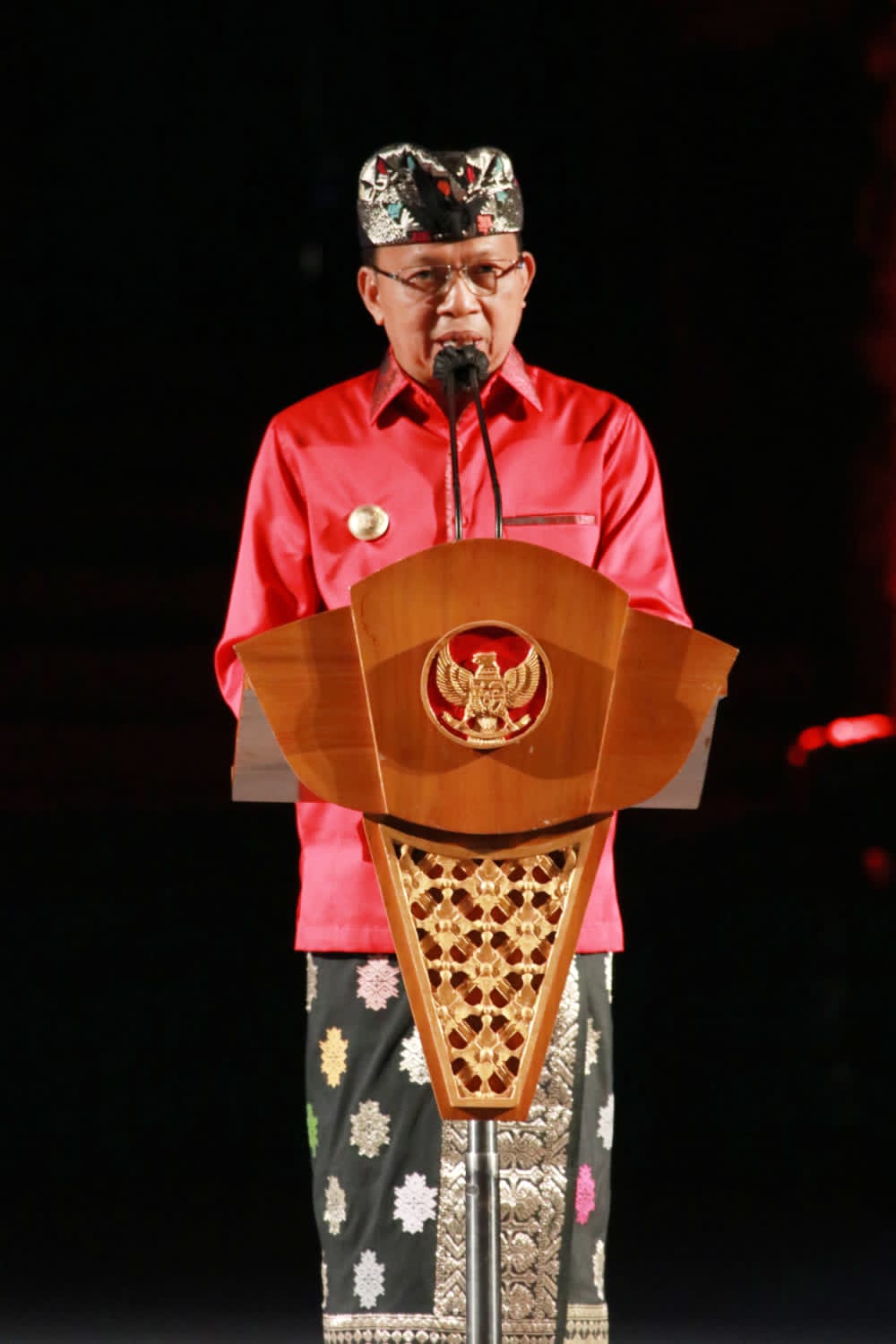 Sementara Presiden RI, Bapak Ir. Joko Widodo yang diwakilkan oleh Menteri Dalam Negeri Republik Indonesia, Bapak Jenderal Polisi (Purn.) Prof. Drs. H. Muhammad Tito Karnavian menyampaikan apresiasi kepada Gubernur Bali, Wayan Koster karena di dalam menangani pandemi Covid-19 sangat berani mengambil keputusan. “Pandemi Covid-19 merupakan pandemi terbesar yang melanda seluruh dunia, tak terkecuali Indonesia dan Kita bersyukur bisa melaluinya. Kemudian di dalam penanganannya, Kami hampir setiap minggu zoom meeting yang dipimpin oleh Menko Maritim dan Investasi RI, Luhut Binsar Pandjaitan dan diikuti oleh Gubernur Koster. Dalam rapat itu, Saya selalu mencatat Gubernur Bali yang paling terlihat berani memutuskan kebijakan dengan meminta vaksin terbanyak. Lalu Saya bertanya, apakah mampu apa tidak warganya divaksin? dan Pak Gubernur Koster jawabnya berani bertanggungjawab,” cerita Tito Karnavian.