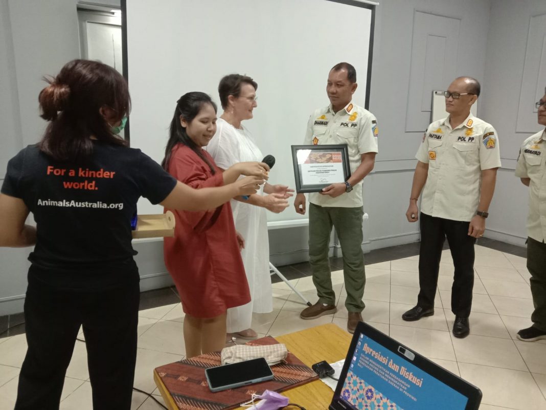 DENPASAR, The East Indonesia – Satuan Polisi Pamong Praja (Satpol PP) Provinsi Bali diberi penghargaan oleh aktifis kesejahteraan hewan terutama anjing asal Australia. Bali bersama aparat penegak hukumnya dinilai sangat konsen dan tegas terhadap larangan konsumsi daging anjing. Tak hanya dari Bali dan nasional saja, kinerja satuan penegak Perkada ini juga meraih penghargaan dari salah satu organisasi penyayang binatang asal Negeri Kangguru, yakni Australia Animals for Kinder World.