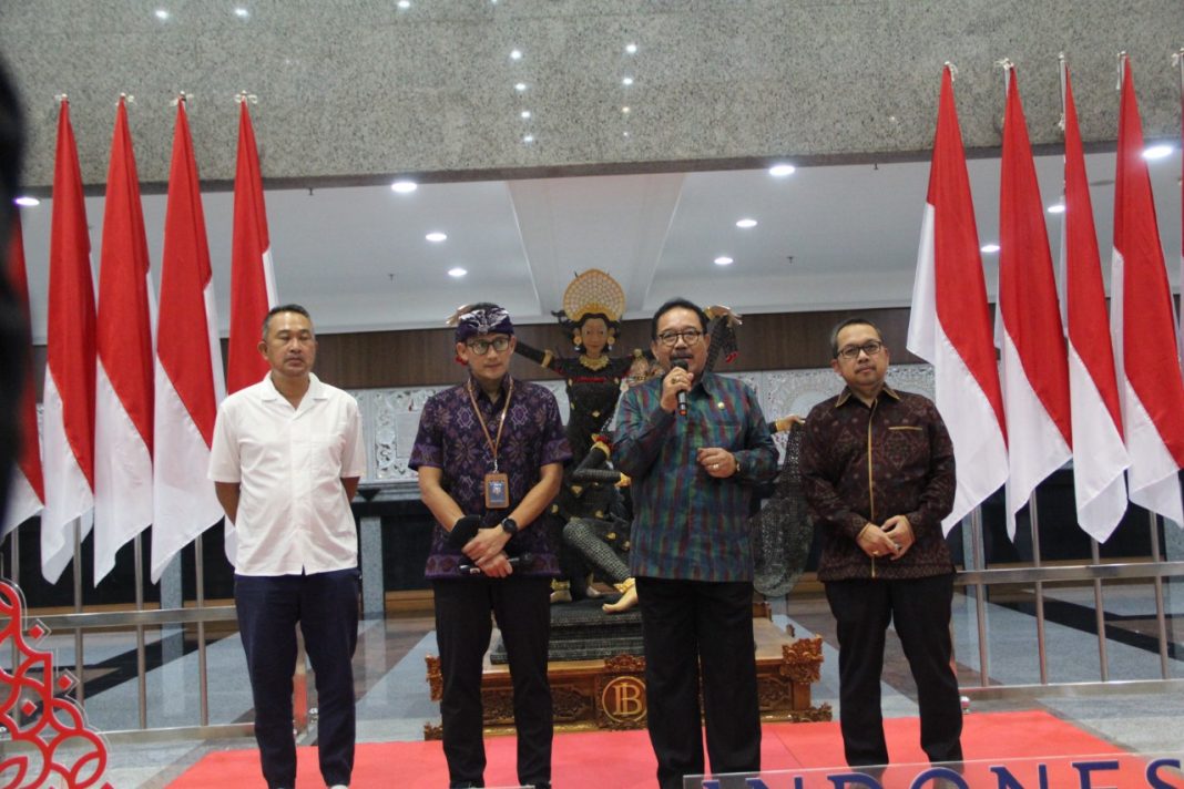 DENPASAR, The East Indonesia – Badan Promosi Pariwisata Daerah (BPPD) Bali yang diketuai Wakil Gubernur Prof. Tjokorda Oka Artha Ardhana Sukawati (Cok Ace) menggelar rapat kerja di Ruang Pertemuan Kantor Perwakilan Bank Indonesia Provinsi Bali, Senin (20/6/2022) malam. Raker yang dihadiri langsung oleh Menteri Pariwisata dan Ekonomi Kreatif (Menparekraf) RI Sandiaga Salahuddin Uno, membahas sinkronisasi program promosi BPPD Bali dengan Kemenparekraf RI guna mempercepat pemulihan sektor pariwisata Bali yang terpuruk akibat pandemi Covid-19.