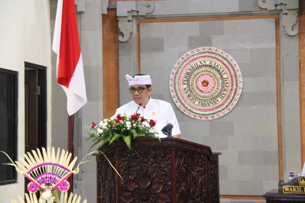 TABANAN, The East Indonesia – Setelah disampaikan tiga buah Ranperda ke hadapan sidang Paripurna DPRD pada tanggal 24 Juni lalu, yang telah mendapat pemandangan umum dari Fraksi-fraksi DPRD, Bupati Tabanan, Dr. I Komang Gede Sanjaya., S.E., M.M, selanjutnya memberikan jawaban / tanggapan atas pemandangan umum fraksi-fraksi Dewan Perwakilan Rakyat Daerah Kabupaten Tabanan pada Rapat Paripuna ke 5 (lima) Masa Persidangan II Tahun 2022 DPRD, Selasa (28/6).