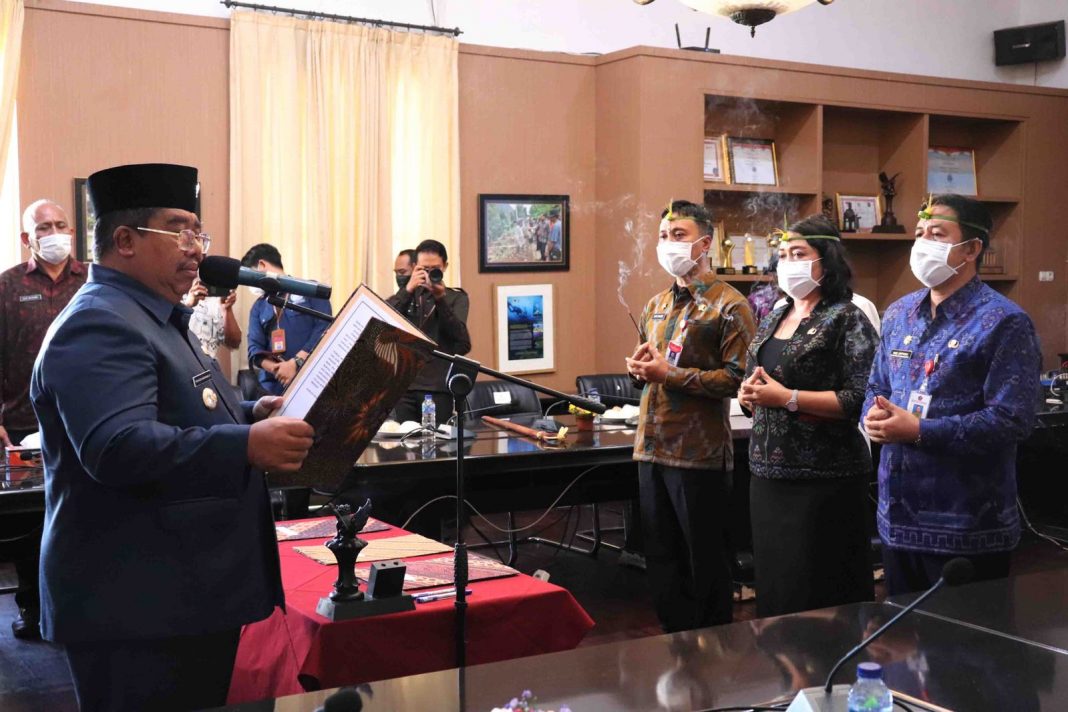 SINGARAJA, The East Indonesia – Bupati Buleleng Putu Agus Suradnyana melantik tiga pejabat hasil seleksi terbuka untuk mengisi tiga jabatan pimpinan tinggi (JPT) Pratama yang lowong.Tiga jabatan tersebut adalah Kepala Dinas Kependudukan dan Pencatatan Sipil (Disdukcapil) Buleleng yang diisi oleh Made Juartawan yang sebelumnya menjabat sebag ai Camat Gerokgak. Kemudian, Kepala Dinas Pengendalian Penduduk, Keluarga Berencana, Pemberdayaan Perempuan dan Perlindungan Anak (PPKBPPPA) yang diisi oleh I Nyoman Riang Pustaka yang sebelumnya menjabat sebagai Camat Buleleng serta Kepala Dinas Arsip dan Perpustakaan Daerah (DAPD) Buleleng yang diisi oleh Made Era Oktarini yang sebelumnya menjabat sebagai Kepala Bagian Kesejahteraan Rakyat pada Sekretariat Daerah Buleleng. Pelantikan dan pengambilan sumpah dilakukan secara hibrid, daring dan luring dari Ruang Rapat Lobi Kantor Bupati Buleleng, Selasa (12/7/2022).