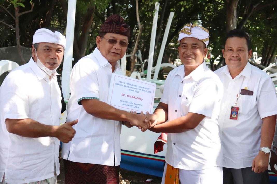 SINGARAJA, The East Indonesia – Wakil Bupati Buleleng I Nyoman Sutjidra menyerahkan tujuh unit sampan fiber dan satu set jaring tasi kepada Kelompok Nelayan Segara Rahayu. Bantuan tersebut merupakan hibah yang bersumber dari Anggaran Pendapatan dan Belanja Daerah (APBD) Kabupaten Buleleng Tahun 2022.