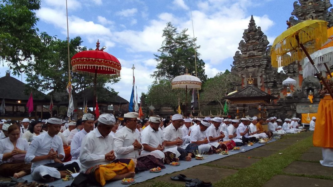 SINGARAJA, The East Indonesia – Sekretaris Daerah (Sekda) Gede Suyasa memimpin rombongan Pemerintah Kabupaten (Pemkab) Buleleng melakukan bakti penganyar di Pura Mandhara Giri Semeru Agung, Kecamatan Senduro, Kabupaten Lumajang, Provinsi Jawa Timur. Bakti penganyar dilaksanakan pada hari Selasa (19/7).